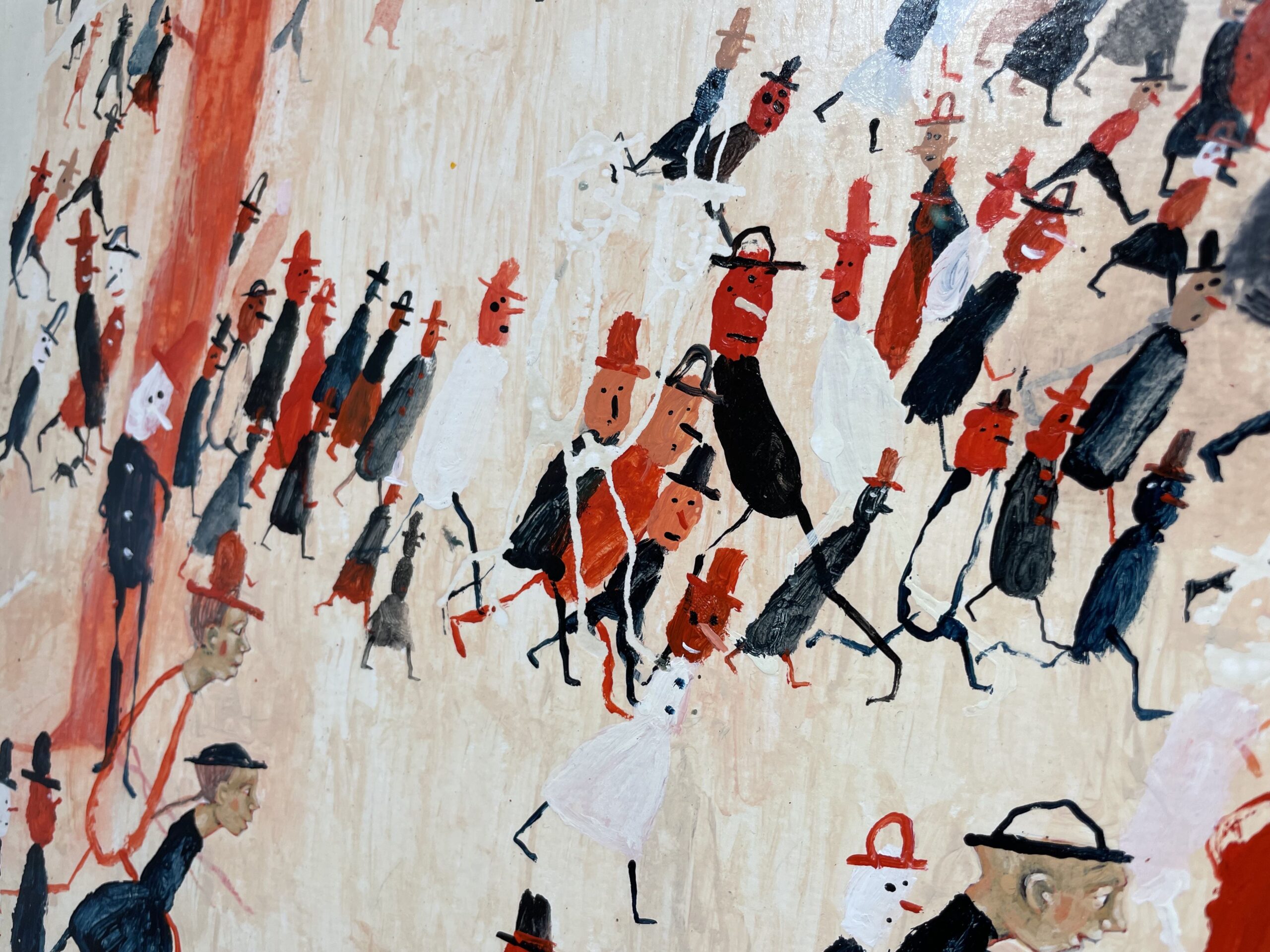 Intrigerend wordt het pas echt wanneer je je het beeld eigen maakt en het aanpast, wanneer je een figuur bewust rust gunt of zachter wil tonen dan wat de eerste blik te bieden heeft. Dat is precies wat Boudry doet. In haar recente werk wordt dat nog versterkt doordat ze de beelden in nieuwe, gedurfde formaten dwingt die de figuren bijna letterlijk uit hun historische context duwen. Het gaat verder dan empathie: je ziet hoe zij het beeld toe-eigent, het zelfbewustzijn erin projecteert en de oude voorstellingen het heden in trekt. De figuren blijven herkenbaar, maar hun gewicht verschuift door de interventie van Nele: ze worden minder icoon, meer mens.