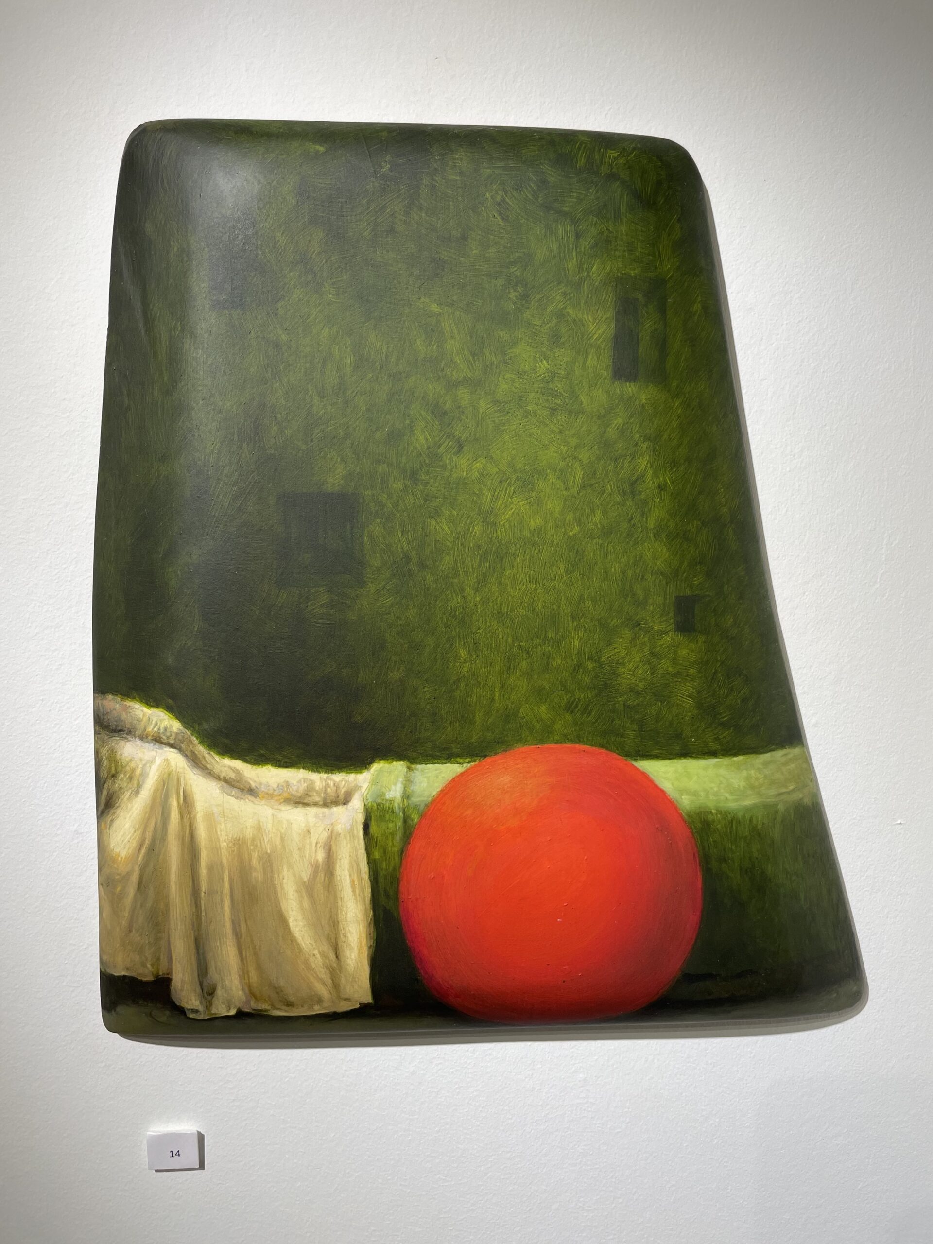 Het lijkt ook een teken van de tijd: het is de derde keer in enkele weken dat ik een hedendaagse kunstenaar La mort de Marat van Jacques-Louis David zie herinterpreteren. Bij Nele komt de revolutionair zelf niet in beeld, enkel zijn bad en – in plaats van de brief en de stoel – een reusachtige appel. De vette knipoog kan de onderliggende ernst niet verbergen. De appel is alledaags, huiselijk bijna, maar plaatst zich naast de beladen leegte van de afwezige figuur. Je kan er tegelijk een nood aan een nieuwe denkwijze in lezen, een radicale herijking, én de moord op de revolutionaire gedachte zelf: de schreeuw van het volk die gehoord wil worden in een luide wereld, maar niet meer de juiste woorden vindt, platgewalst onder de dikke stroom van voorgekauwde paradigma’s.