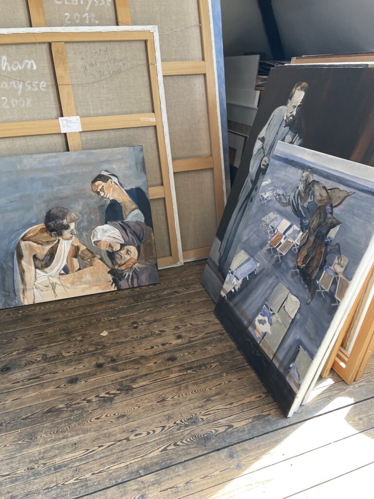 Voor velen zou dit misschien een deprimerende gedachte zijn. Niet voor Johan, zo blijkt uit zijn brede glimlach wanneer hij hier verder over mijmert. Hij voelt zich thuis in het onbehagen dat hij oproept, de onzekerheid die hij recht in het gezicht aankijkt en die hij via zijn doeken op de kijker reflecteert. Het biedt hem -en via hem de kijker- een vorm van vrijheid. Het hele proces van creatie, net als er zich van bevrijden, blijkt besmettelijk. De kijker vindt dan eens een betekenis die het moment erop lijkt te zijn verdwenen, in een wederkerig proces van wat Hannah Arendt zo mooi ‘nataliteit’ noemde. Ik laat me weer vangen in filosofische referenties. Niet doen.
