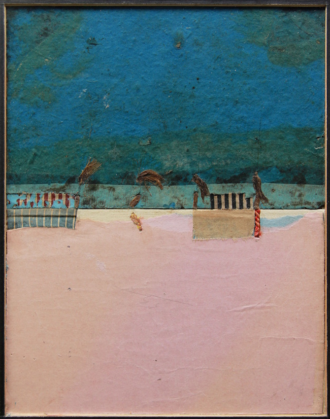 De ‘seasons’ zijn collages gemaakt van het voor- en achterplat van negentiende-eeuwse boeken. Die platten dompelt hij enkele dagen onder in water om het gemarmerd papier waarmee ze aan de binnenkant bekleed zijn los te weken. Vervolgens schikt hij de ruwe platten met de binnenzijde horizontaal boven elkaar in een zelfgemaakt fijn houten kader met glas. Zo lijken ze enigszins op geabstraheerde landschappen met de horizonlijn netjes in het midden. Opmerkelijk is hoeveel sporen van het bindproces op de platten te zien zijn, gaande van handgeschreven teksten tot linnen waarmee de katernen van de boeken aan elkaar zijn genaaid. Het lijken wel eeuwenoude palimpsesten, stille getuigen van een vroegere beschaving. In werkelijkheid verwijst Kris ermee naar seizoenen en weersomstandigheden. Daarnaast valt op hoeveel kleurencombinaties de ‘seasons’ vertonen. Als je ze vanop een afstand bekijkt, denk je vanzelf aan materieschilderijen à la Antoni Tàpies (1923-2012): verweerde, aardkleurige oppervlakken waarin tekens gekrast lijken.
