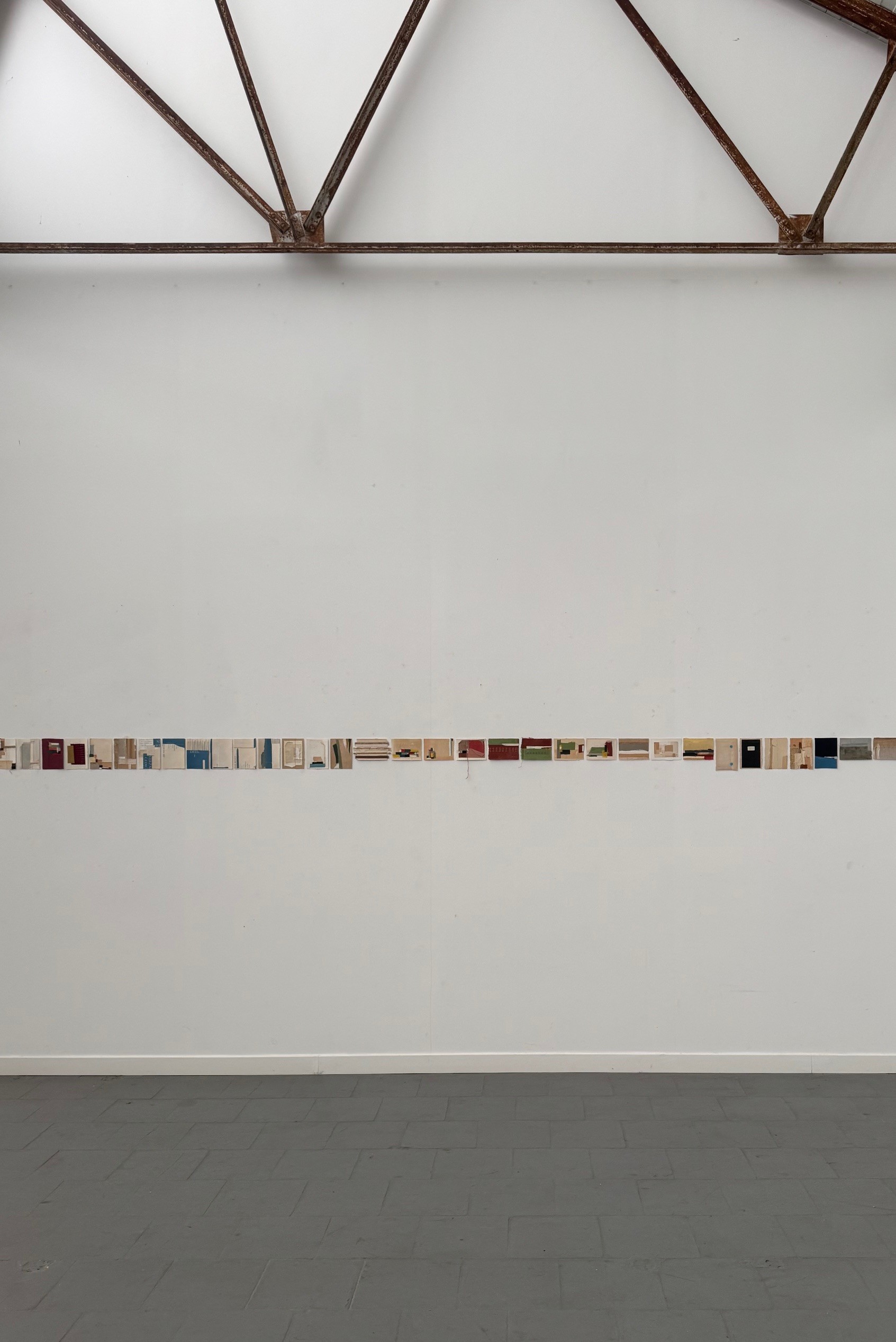 Kijkers hebben hoe dan ook een aparte kijk, en die kan heel afwijkend zijn van wat ik zie. En ik wilde heel bewust het hele proces tonen. Ook eens als er wat minder sterke ideeën waren. De stapel, de veelheid van werk was voor mij belangrijk. Ik denk dat dit een waarde heeft voor de kijker. Ik laat op die manier ‘tijd’ zien. Ik heb niet elke dag een werk gemaakt, maar wel een zeker ritme volgehouden. En uiteraard zie je ook een afspiegeling van mijn gemoedsgesteldheid en context waarin ik me bevond. Soms zocht ik nieuw materiaal, soms nam ik wat er voor mij lag.